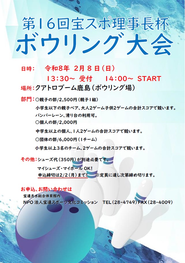 【2/8】第16回宝スポ理事長杯 ボウリング大会