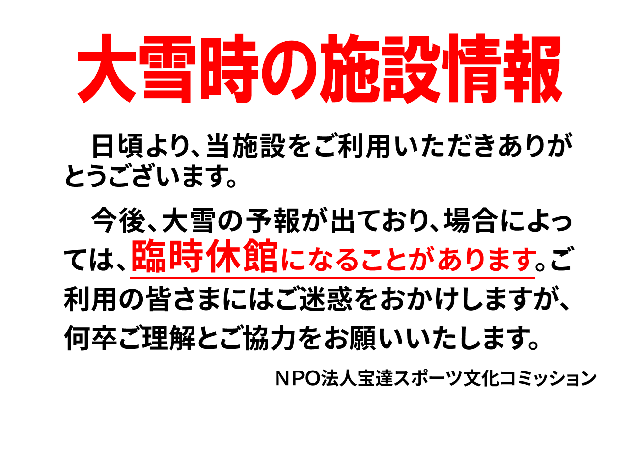 大雪による臨時休館のお知らせ